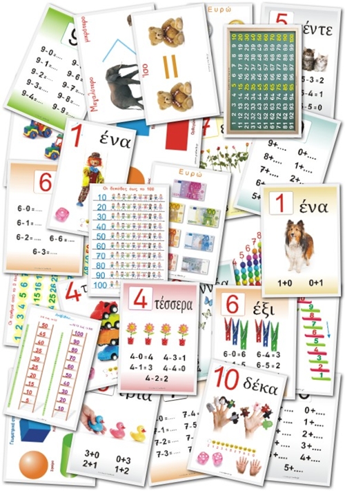 Χαρακτηριστικά: Σαράντα (40) εκπαιδευτικές κάρτες διάστασης περίπου 15 επί 10 εκατοστά, πολύχρωμες, με όμορφες εικόνες και εξαιρετικό σχεδιασμό. Ειδικά κατασκευασμένες για να μαθαίνει το παιδί. Να δει με άλλο τρόπο, να εξερευνήσει, να χειριστεί, να οργανώσει. Με τη βοήθεια του εκπαιδευτικού στο σχολείο και του γονέα στο σπίτι το προκαλούμε να σκεφτεί, να αντιληφθεί και να συνδέσει την αφηρημένη μαθηματική γλώσσα με τη γλώσσα της καθημερινής επικοινωνίας. Επιδιώκουμε να μαθαίνει με ευχάριστο τρόπο μέσα από το καθημερινό παιχνίδι. Αριθμός, αρίθμηση, απαρίθμηση, αριθμητική ακολουθία, σύγκριση ποσοτήτων, αντιστοίχιση, εξοικείωση με αριθμητικά σύμβολα, σχέσεις και βασικές μαθηματικές ιδέες. Περιλαμβάνουν όλους τους αριθμούς στις εξής συλλογές: